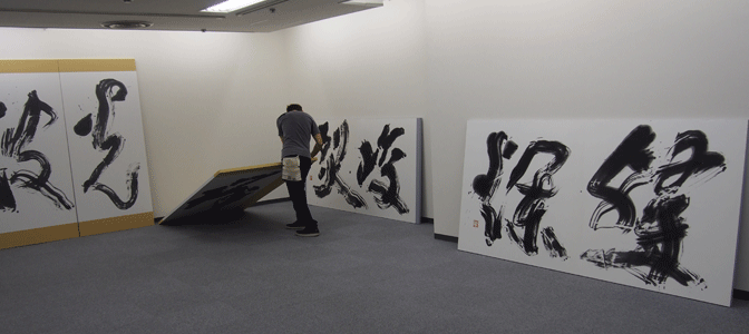 第二会場通路の表看板は枝雪先生のお弟子さん達が、1字1字を分担して書かれた書だそうです。